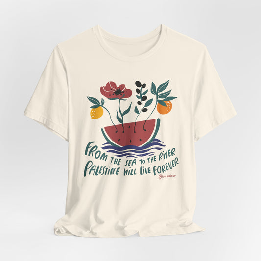 Artist Tiril Valeur For Palestine | 100% Of Profits Donated | From The Sea To The River | Short Sleeve Tee